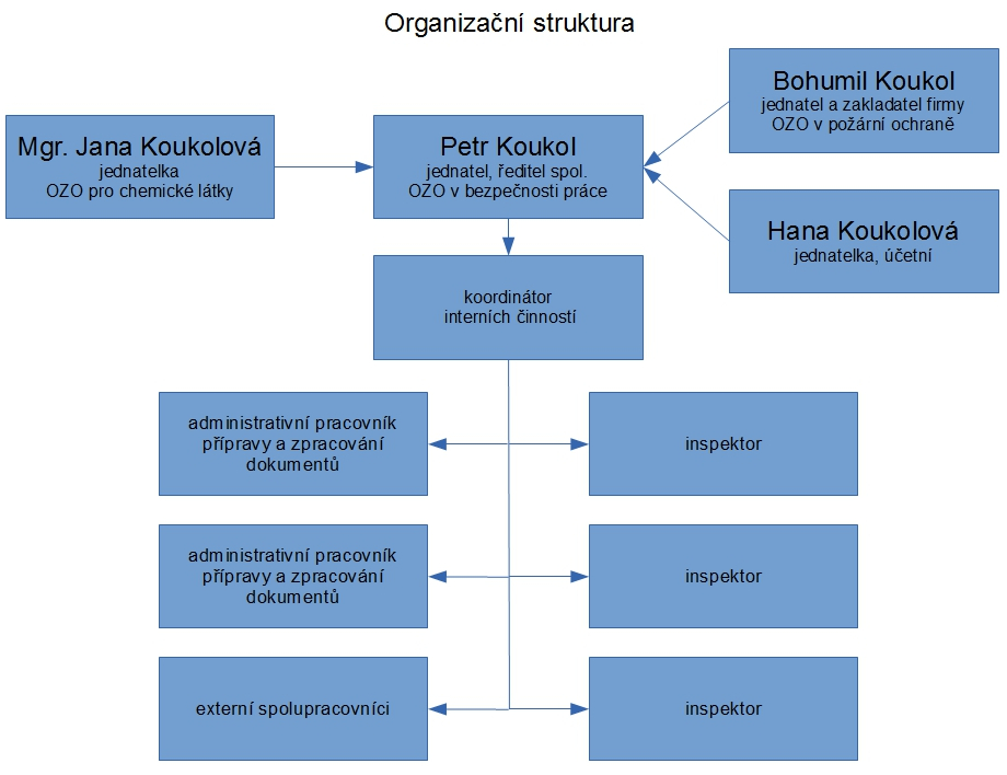 Hlavní činností je poskytování poradenství v oblastech bezpečnost práce, požární ochrana a hygiena práce. Dále jako doplňkovou činností je ekologie, odpadové hospodářství, prodej tabulek a další. Z pohledu geografické působnosti jsou naší oblastí především Střední čechy a Praha. Máme ale i zkušenosti s celorepublikovým pokrytím.